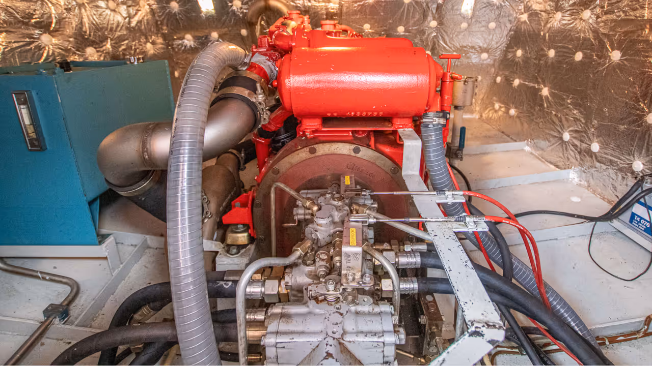 Single Iveco 8061 M12 diesel engine producing 88hp with approximately 80 hours. Freshwater heat exchanger cooling, hydraulic gearbox, and water-cooled exhaust. Paddle-wheel propulsion via hydraulic drive system. Gear selection is continuously variable via hydraulic control.