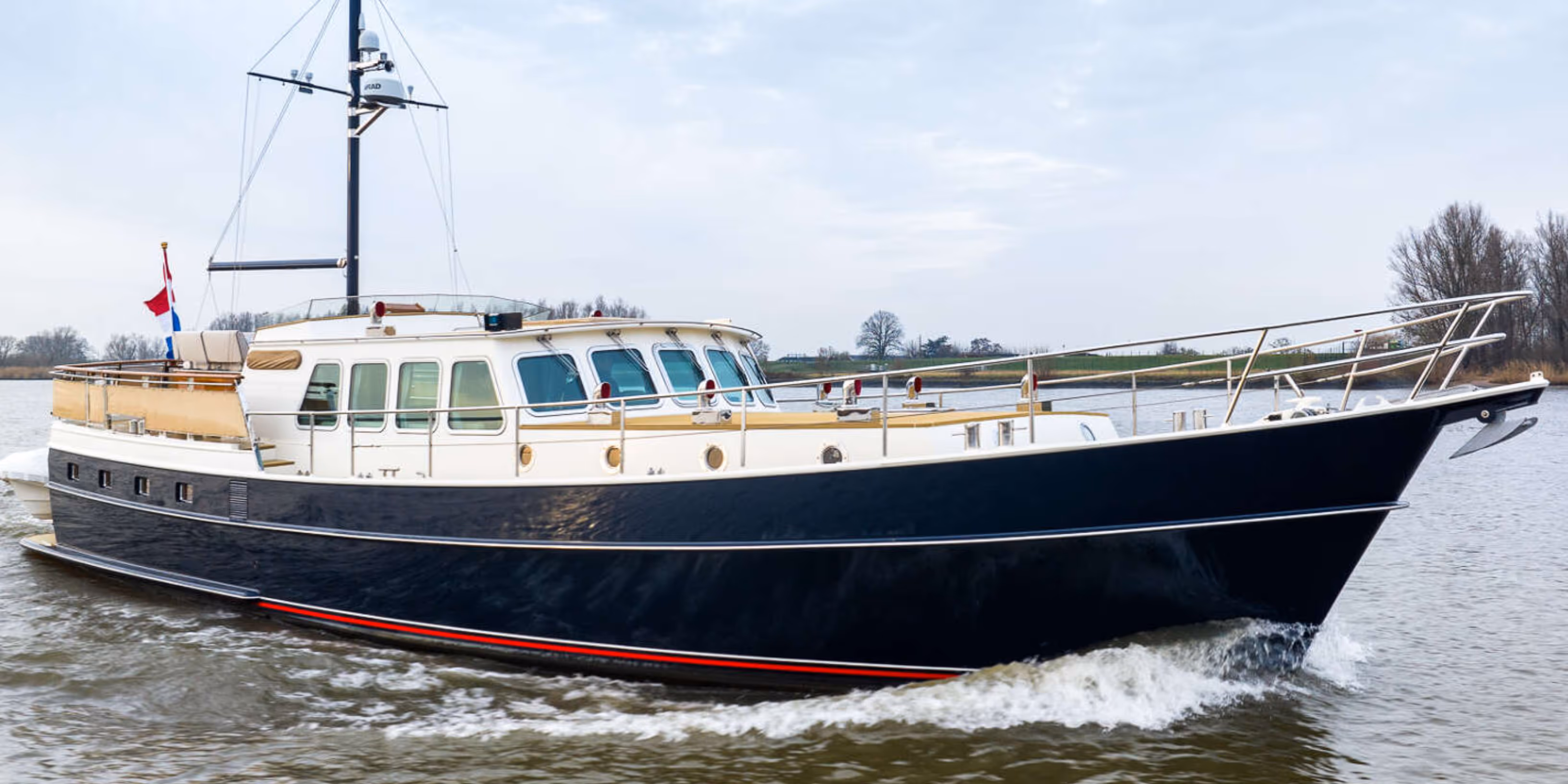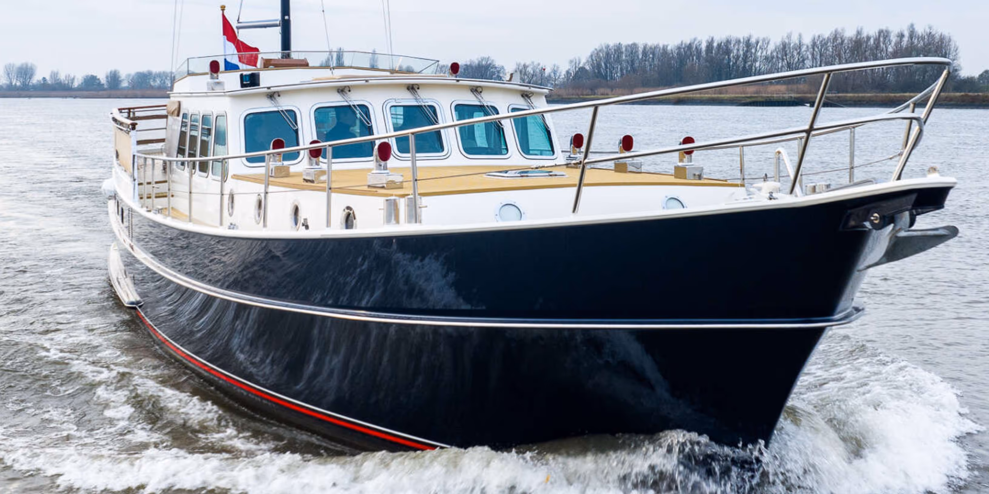 A steel long-range trawler yacht with a 2018 Zeelander rebuild, hybrid diesel-electric drive, and expedition-grade craftsmanship by Vripack.