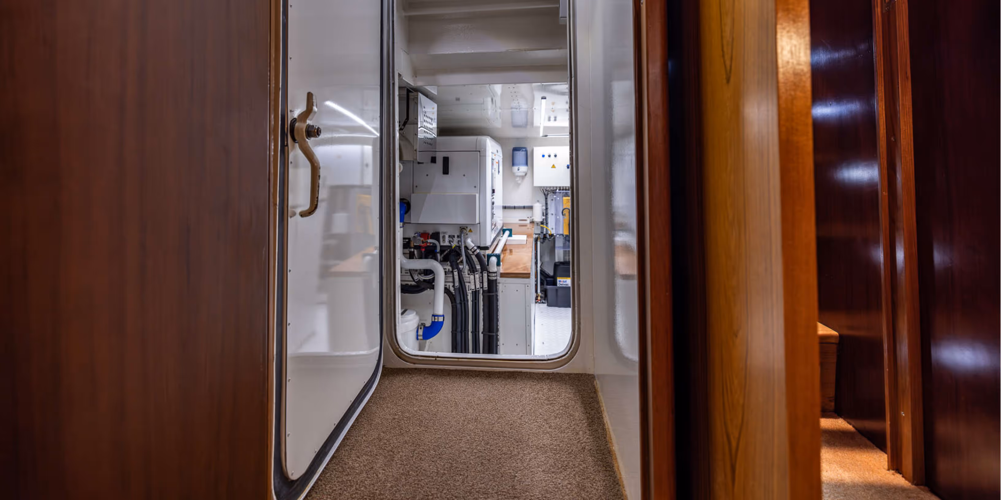 • Mastervolt system (combi chargers/inverters) • Battery bank: 540 Ah service • Shorepower 230/400V • 12V and 24V DC systems • Electric bilge pumps (3) + manual backup • FirePro FP2000 aerosol extinguisher system