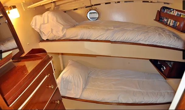 Equipped with safety systems appropriate for long-range cruising. Includes navigation lights, bilge pumps, fire suppression, and deck hardware for secure anchoring. Full inventory to be confirmed.