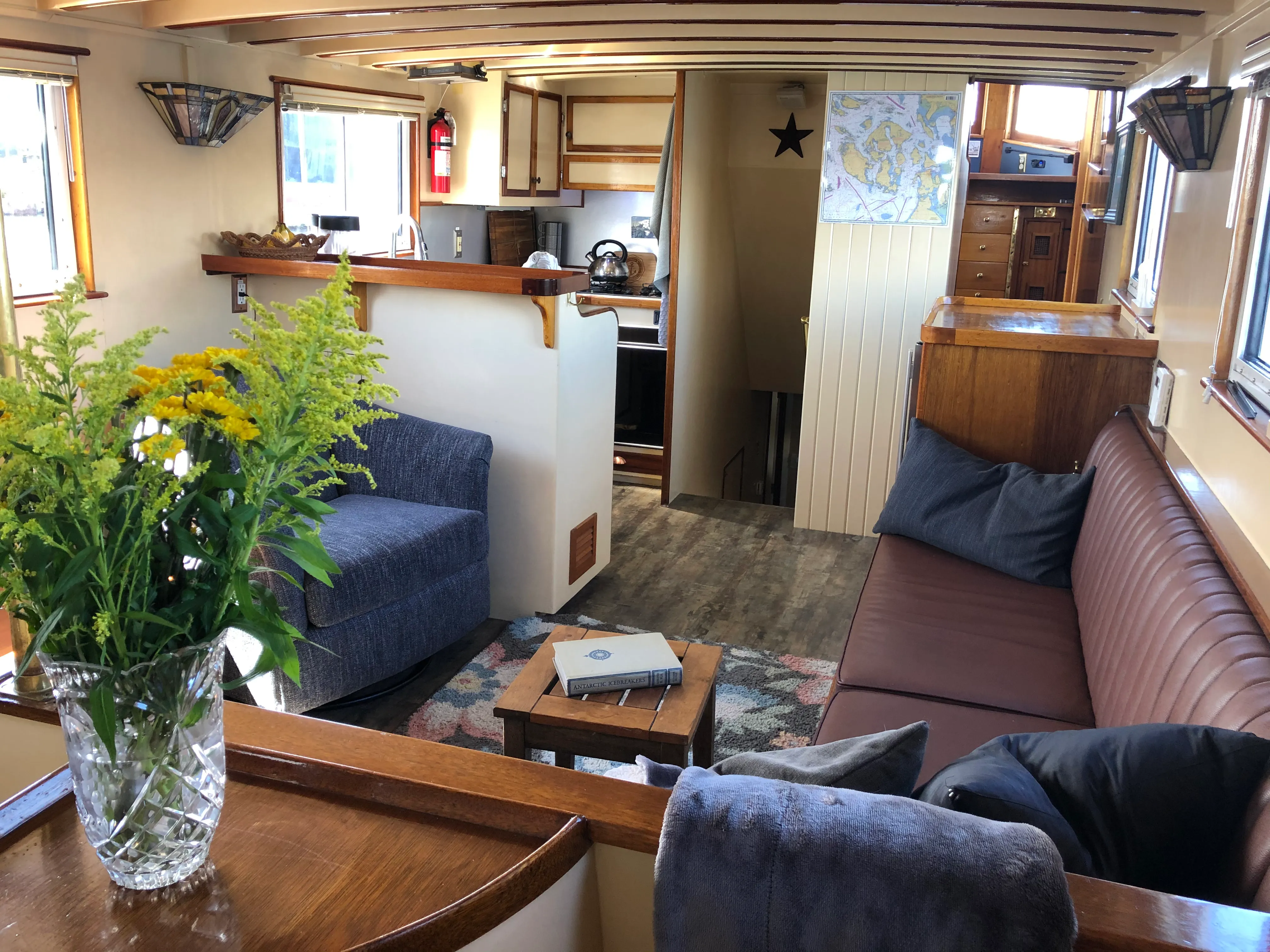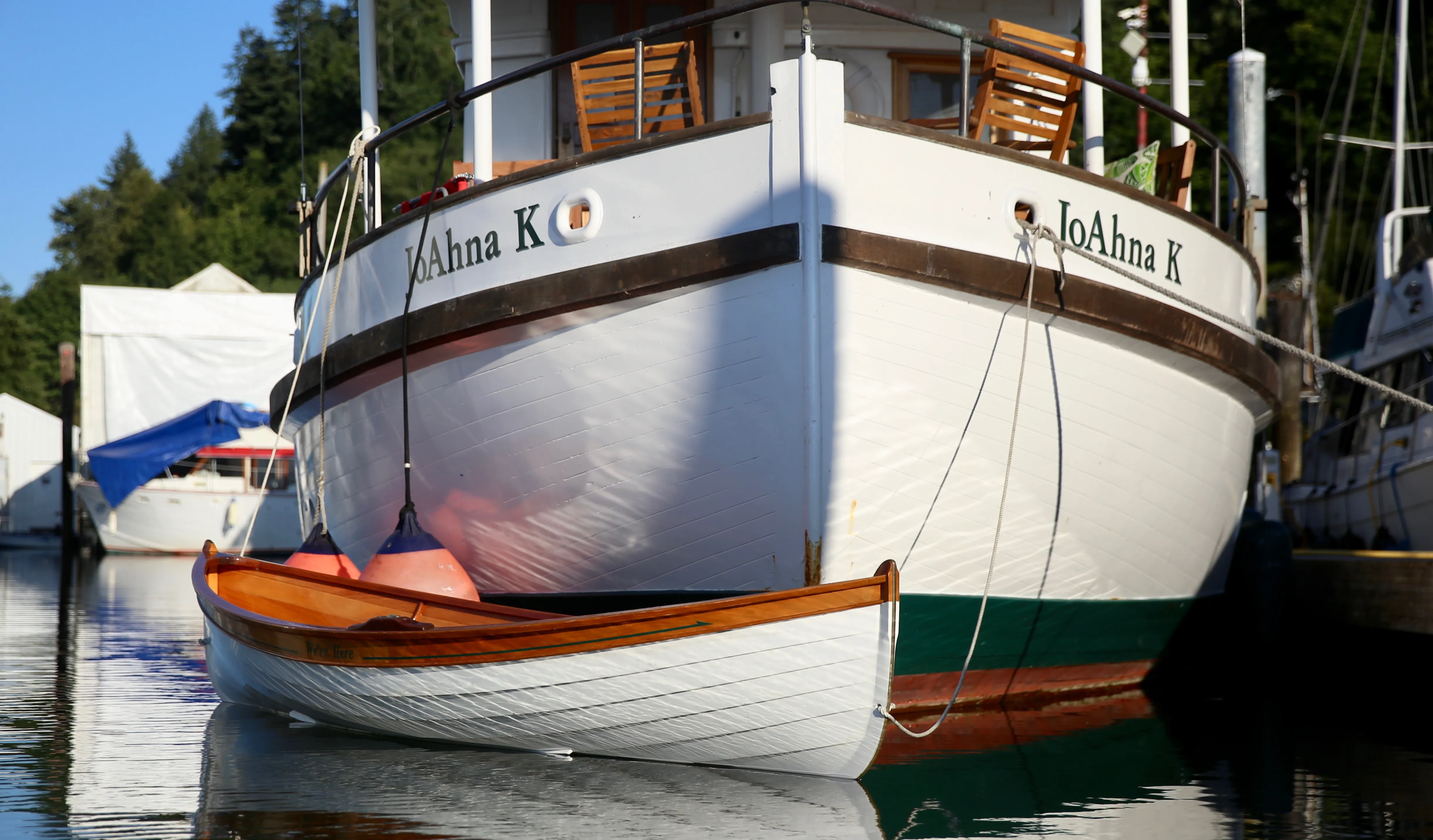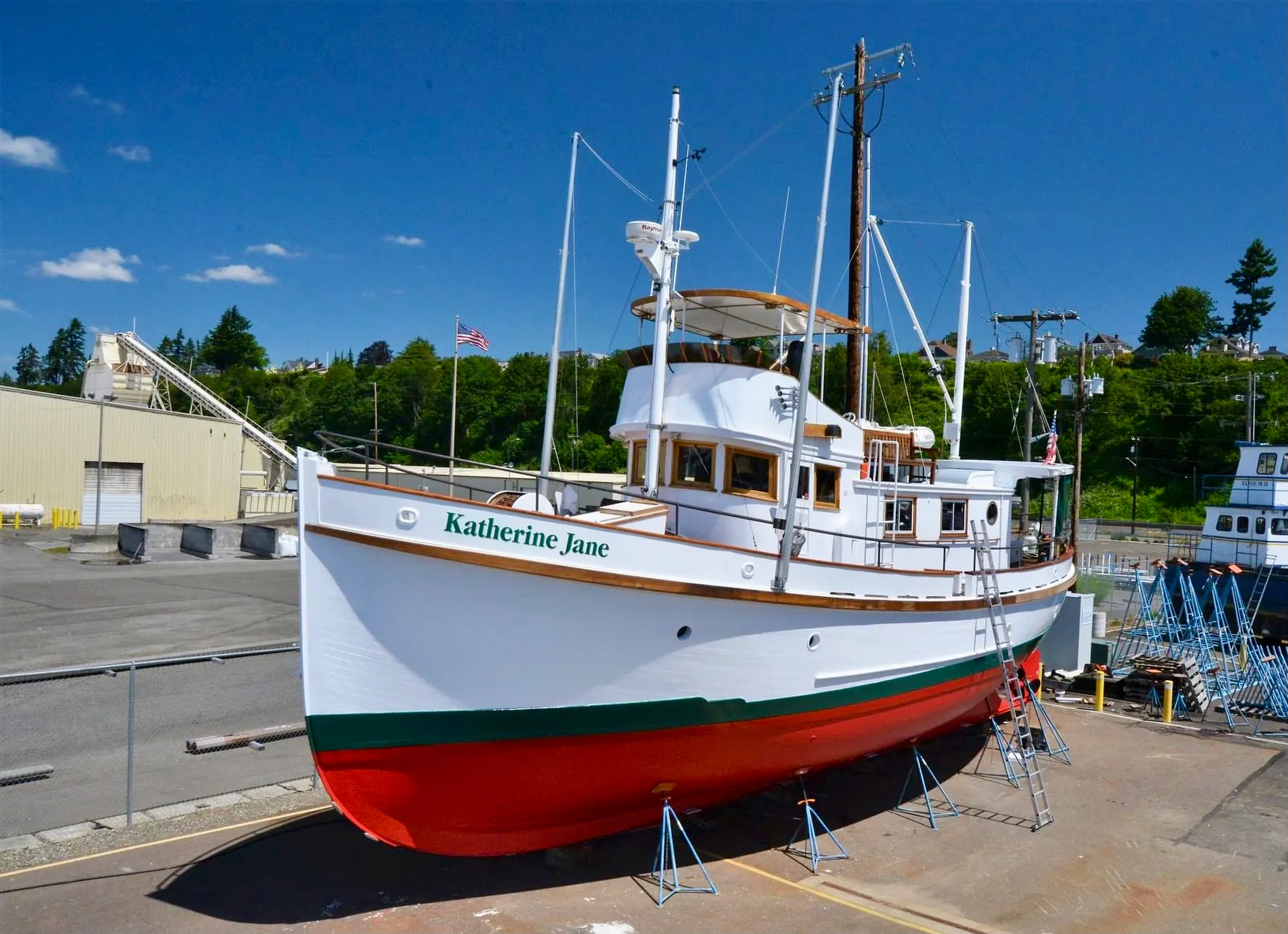 Built in 1952 by Fellows & Stewart in San Pedro, JoAhna K is a 58-foot heavy timber motor yacht designed by William Garden. Originally commissioned for long-range exploration, she carries 3,200 gallons of fuel and 800 gallons of water, offering a true passagemaking range of over 4,000 nautical miles. Her story includes Hollywood origins, two decades of Alaskan charter service, and extensive professional restoration. A major refit in 2002 (costing over $750,000) included twin John Deere Lugger diesels, a Northern Lights generator, Hurricane hydronic heat, updated electrical systems, modern electronics, new shafts, props, plumbing, and three VacuFlush heads. A later fire was contained, and the yacht underwent another 1.5-year professional rebuild that restored her.