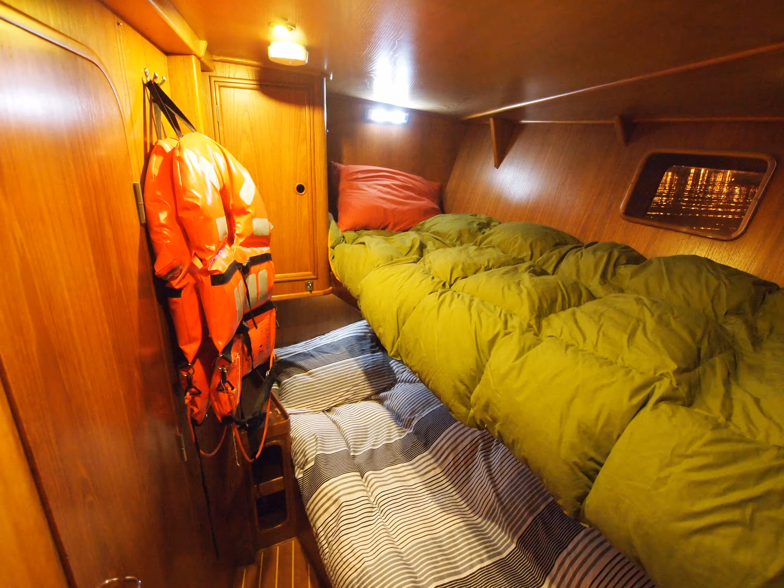 Ocean Tramp has five guest cabins accommodating up to eight guests in a mix of cozy double and single bunks. The yacht is equipped with three bathrooms with hot showers and a reliable 24/7 heating system to keep the interior dry and warm. The saloon provides a welcoming communal space for meals and relaxation.